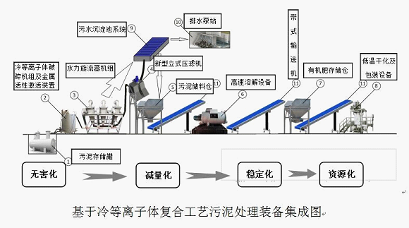 污泥资源化(制肥)项目采用冷等离子体复合处理工艺和设备对污泥进行资源化处置,具体方式是将污泥进行无害化、资源化的同时应用处理后的污泥制取小分子有机肥。该技术利用基于电液压脉冲复合工艺处理污泥,利用冷等离子体杀灭污泥中的有害生物,降解有毒物质;顺利获得电化学作用改变部分金属价态使其无害化,并提高重金属活性、保留有机物质;运用立式双螺旋增力脱水原理,可直接处理含水率90%以上的污泥,无需设置污泥浓缩池,脱水率高达80%;在特殊机械原理和催化条件下,加入复合钝化剂迅速实现经活化的游离态重金属稳定化处理,生产出符合欧盟标准的农用有机肥料,使城市污泥处置完全达到减量化、无害化、稳定化、资源化。