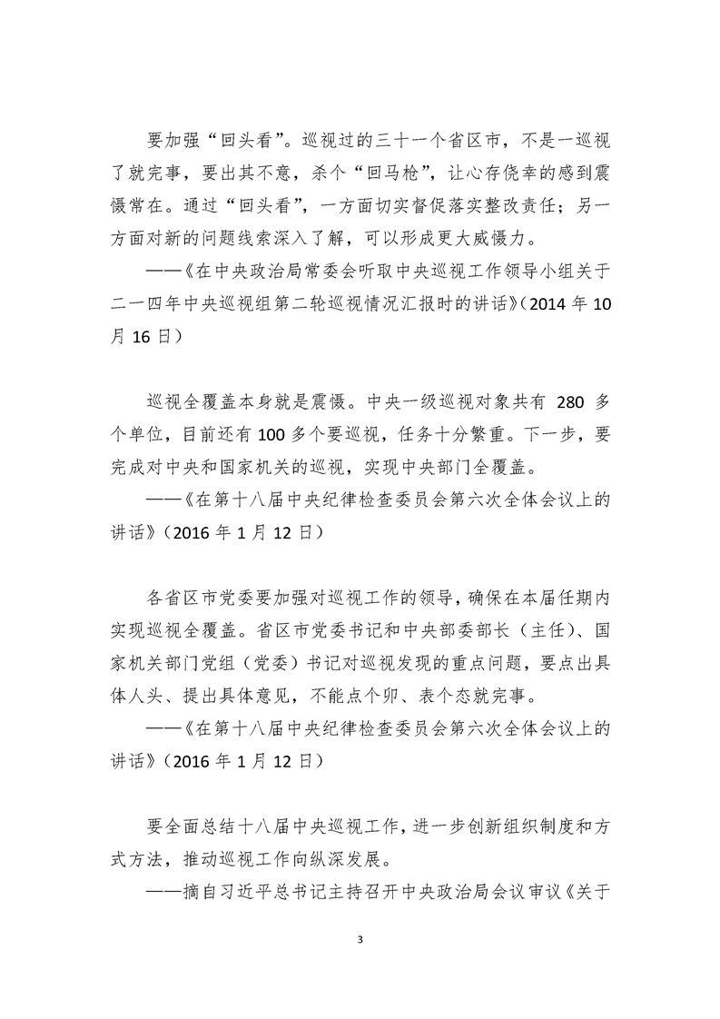 习近平总书记关于有助于巡视工作向纵深开展重要论述摘录
