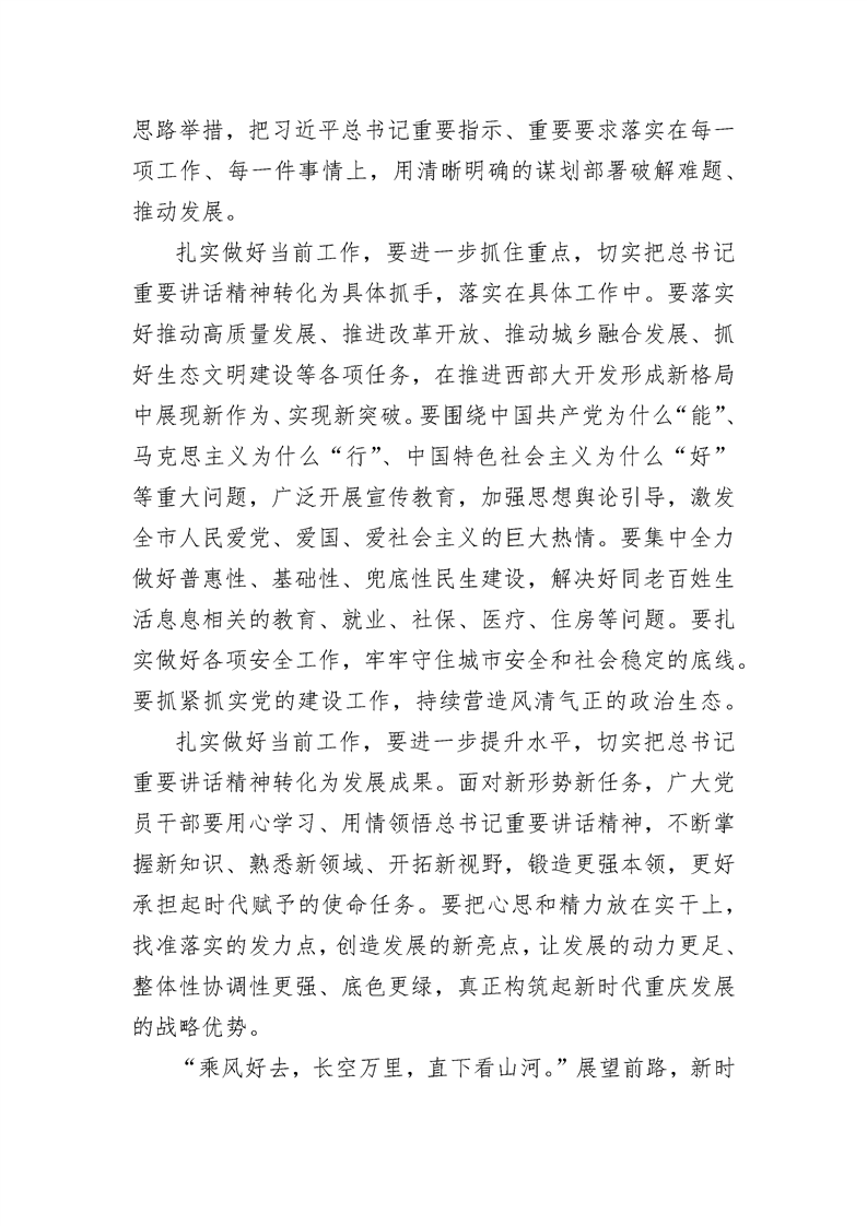 以钉钉子精神扎实实行当前工作——三论学习贯彻习近平总书记视察重庆重要讲话精神